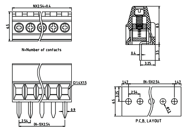 PCB接線端子彈片式