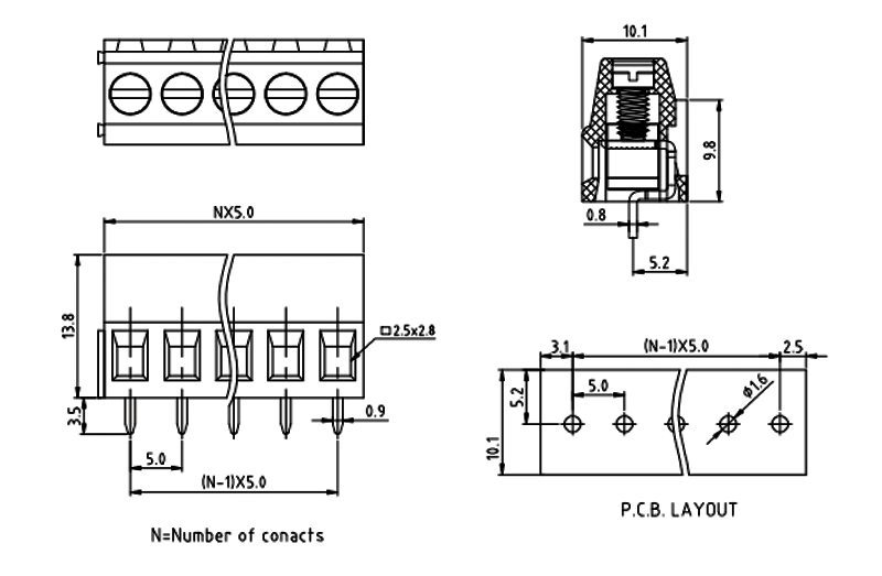 PCB接線端子彈片式