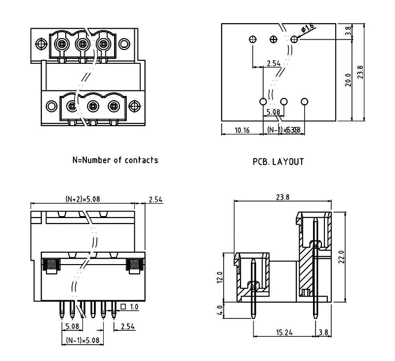 F85-P-5.08方塊螺母式180度