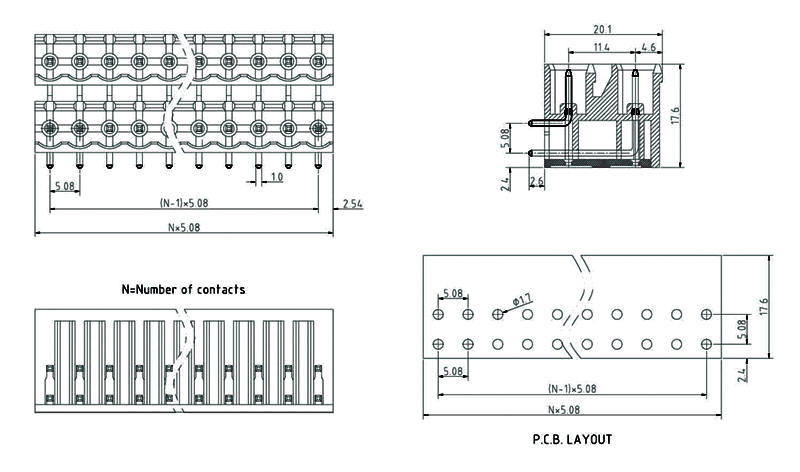 F85-R-5.08開口式90度